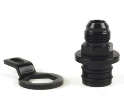 This Fitting is made of  Raw 6061 billet aluminum and is double O-Ring to prevent any leaks. Th bracket is made of titanium for light weight and strength.