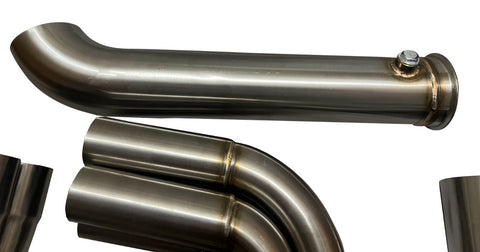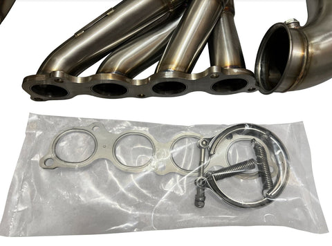 The header comes with 2 exhaust outlet pipings, connection by v-band flanges, for you to custom setup your own ideal hood exit or fender exit header. Due to different car setup, you may need to extend/trim the exhaust piping for proper fitment.