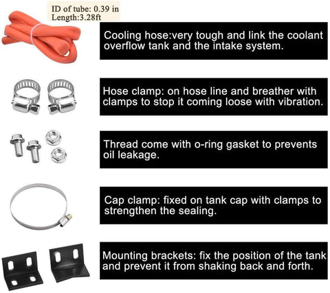 - Features: Tightly closed cap, Fully Tig Welded and Thread Come with O-ring Gasketuff0c Keep a good closed environment and Prevent coolant leakage.1/16in the hole on the top of overflow tank is updated to vent based on feedback from most customers