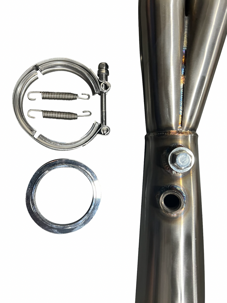 This K Swap 4-1 Megaphone Merge Collector with V-Band Flange is being offered as an option to convert our 4-2-1 or 4-1 header into drag style header.
