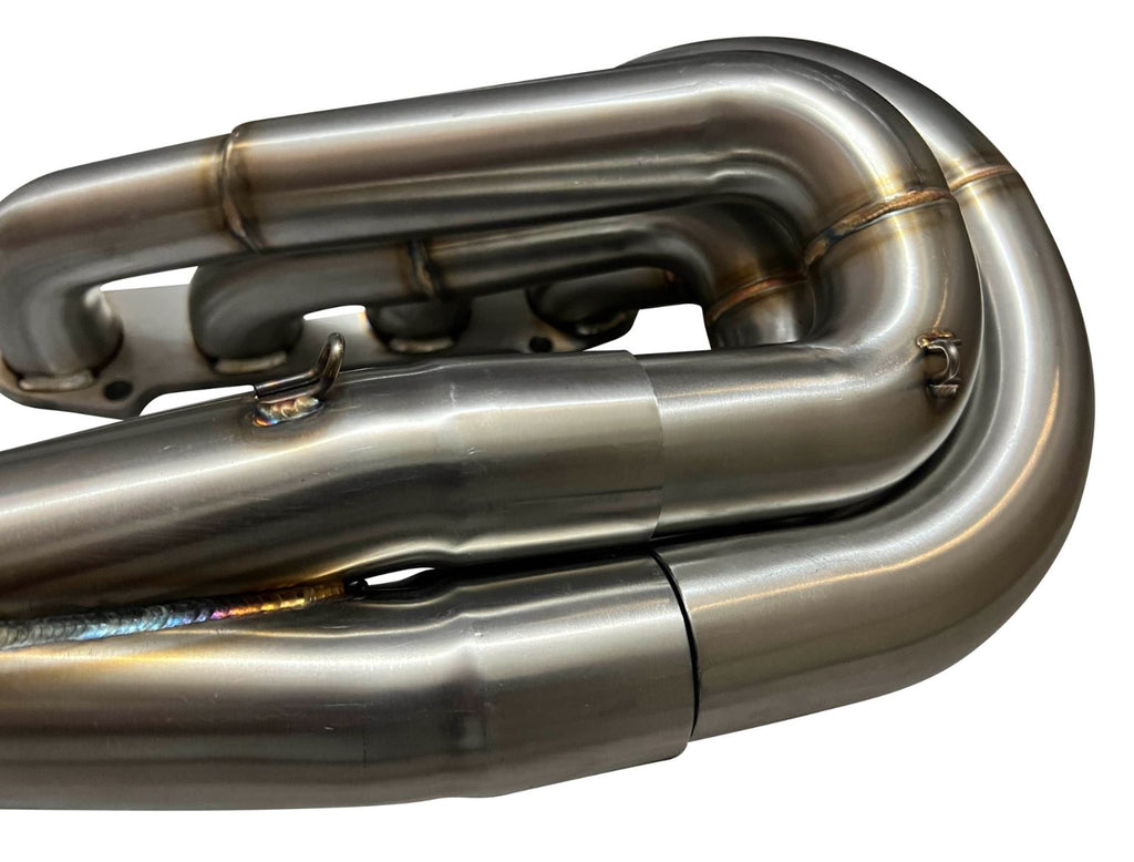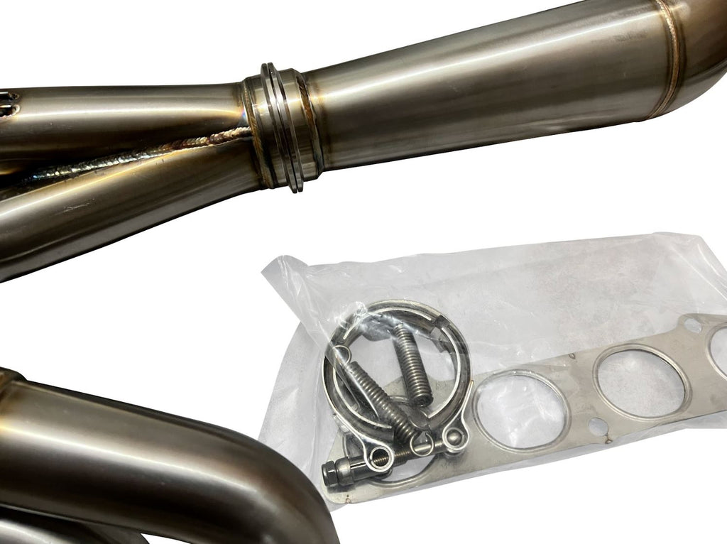 K-Series hood exit race header (4-1 Megaphone) features a true 4-1 Megaphone merge to create equal exhaust flow. A megaphone is added next, to release pressure and increase the speed of the exiting exhaust gases. A small reverse cone is placed at the very end to provide a tiny bit of wanted back pressure.This header delivers the best peak horsepower gains while utilizing a 2 piece design. This is ideal for all forms of competition; Autocross, Drag racing and road racing. Recommended for 2.0-2.4L engine displacements