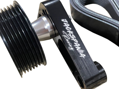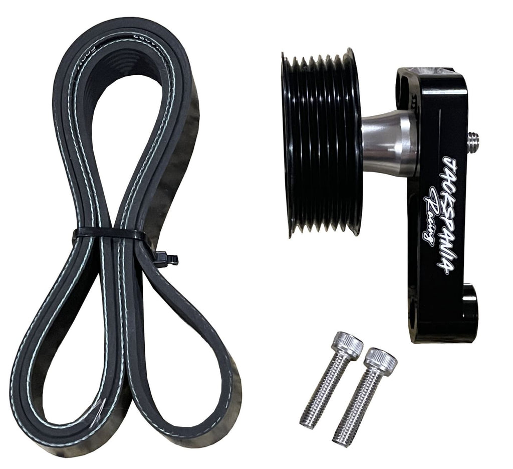 • Unlike our very popular A/C & P/S Eliminator Pulley Kit that relocates the alternator, the EP3 pulley kit also allows the user to keep A/C installed if desired.