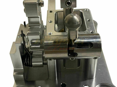 The JackspaniaRacing 5th Gear Lockout works in conjunction with the Our Billet Shifter. This setup was designed with a spring loaded pin to lock the shifter out of the 5-6-R section of the shifter. The end result allows the user to focus more on shifting to four corners.