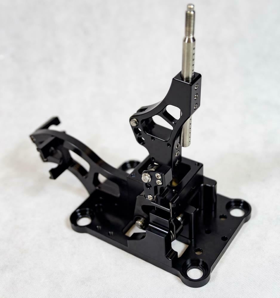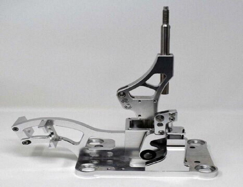 The Race-Spec Shifter uses a simpler fixed elbow position, which is only adjustable and ideal for circuit racers who really like to use the tallest setting. For drag racers, this design is perfect for heavy shifting in cars with dog box transmissions and straight-cut gears. Unlike a stock transmission, most of us know that you can't shift a dog box setup with light hands. At a quick glance, the shifter closely resembles the original design with a few changes made to the shift lever and elbow to support the demands of race cars.