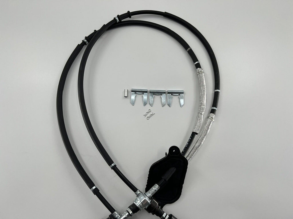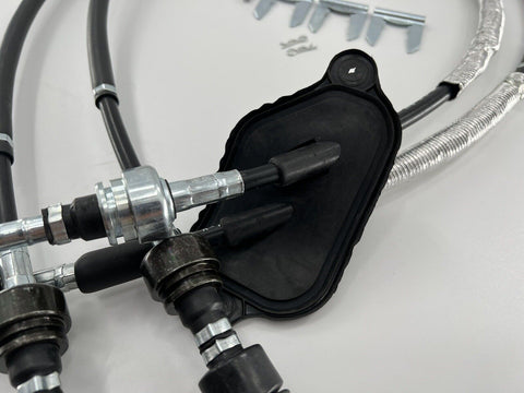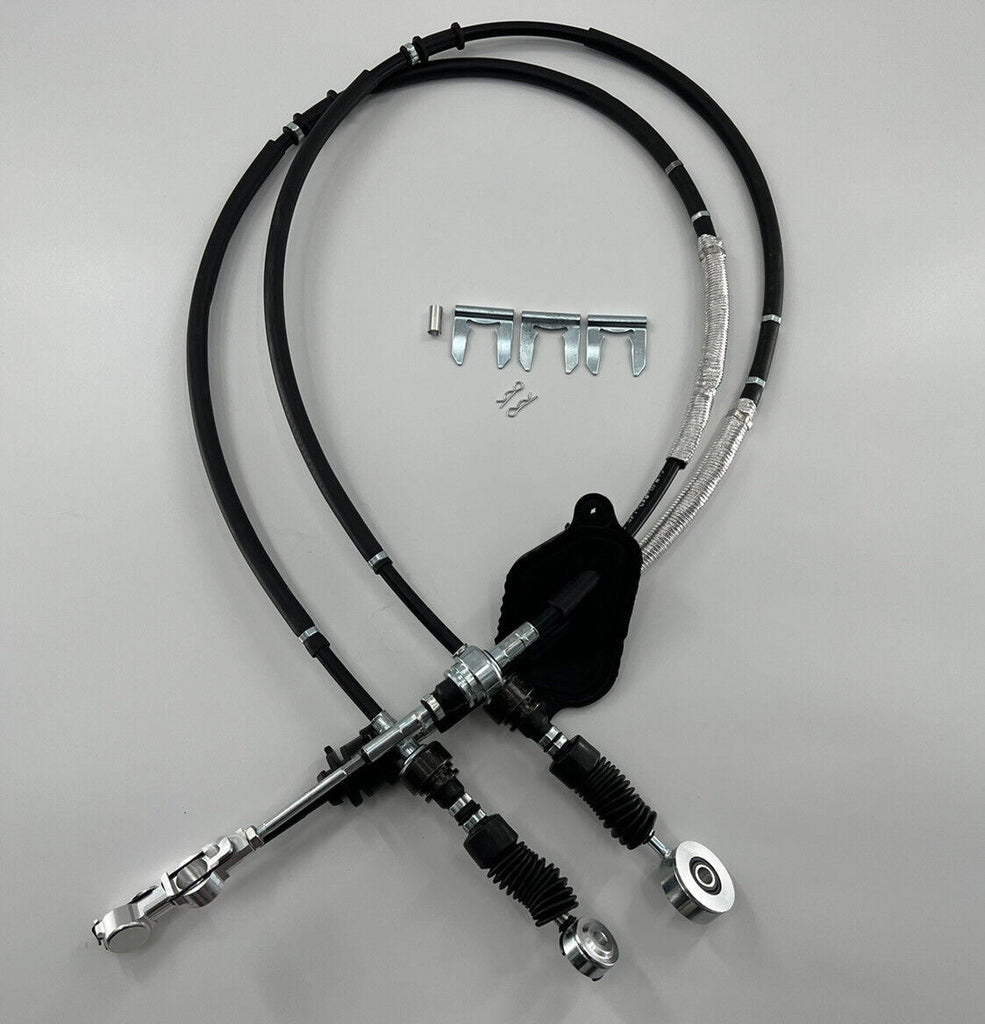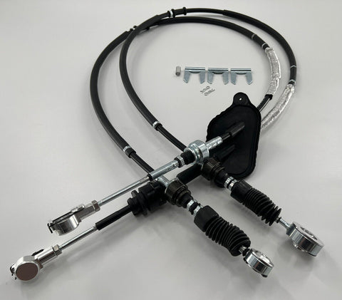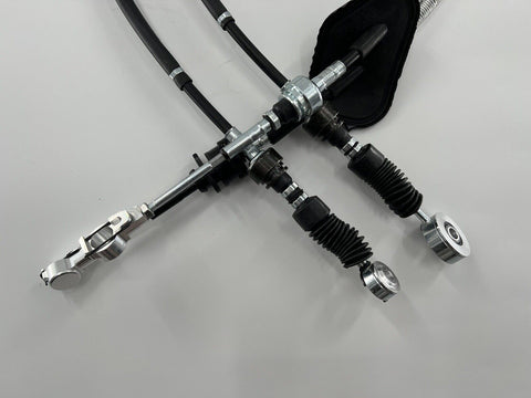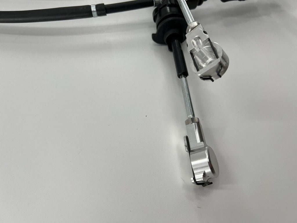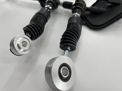 These OEM-Spec Shifter Cables are made entirely of high quality materials and they were designed to meet or exceed the OEM units in all areas of construction. The transmission side of the cables features new spherical bushing which allows greater movement while still providing a strong positive cable. The unique design of these bushings allow the cables to pivot freely while providing a strong and tight feel. These bushings improve shift feel and accuracy when compared to the factory rubber bushings. At the transmission custom billet cable ends are used to provide a strong replacement over the OEM plastic unit.