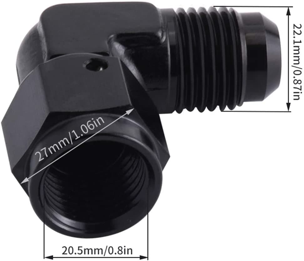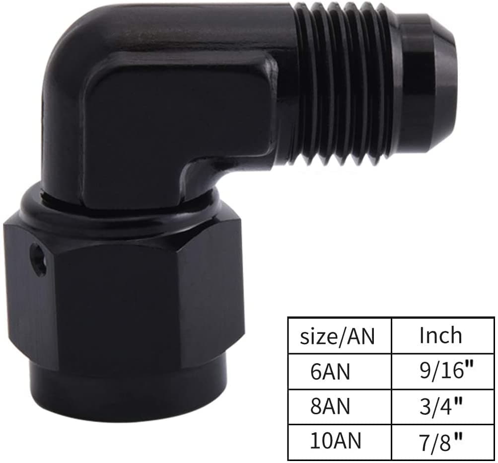 - Female to Male Swivel Fitting Size: female AN10 to male AN10 (7/8-14 UNF) thread pipe connectors, 90-degree elbow flare union.
