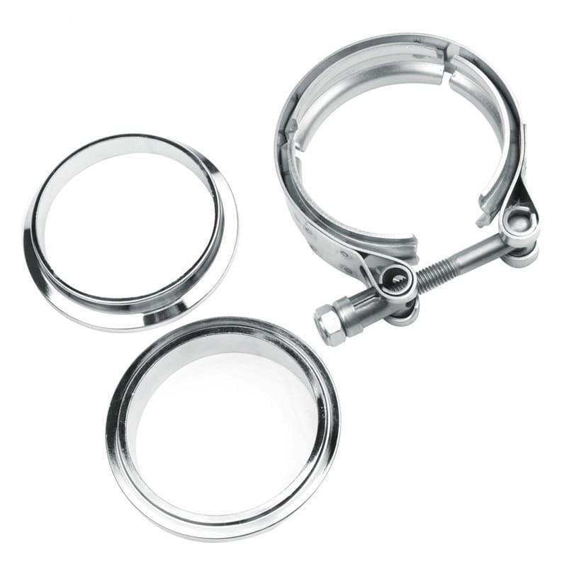 • DESIGN: Each assembly consists of two Mild Steel Male Female flanges and one Mild Steel V-band clamp, providing a perfect overlap seam for welding. The exhaust clamp design allows for a gasket free seal.