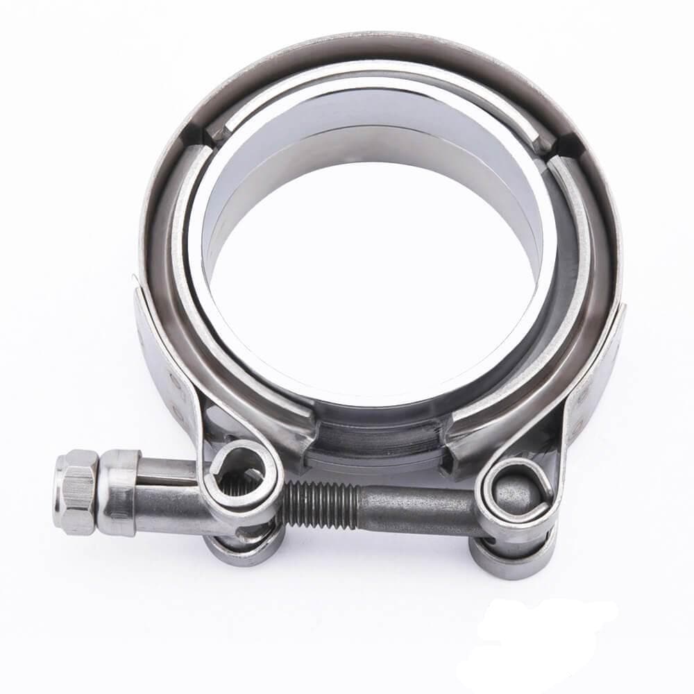 • The V-Band Clamps/Couplings offer effective fastening solutions in exhaust systems, remove intercooler systems and turbo parts, such as charge piping, intake pipes, diesel engines, turbochargers, and heavy-duty exhaust systems. Etc