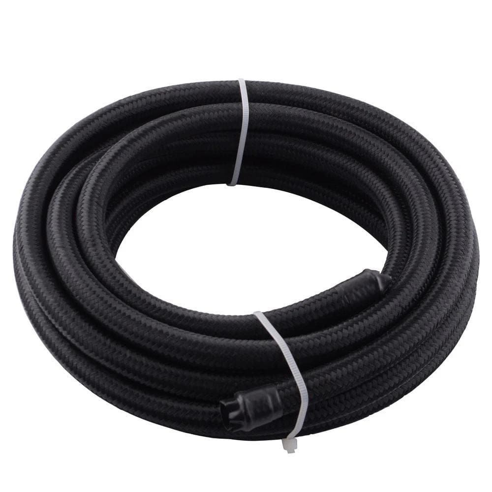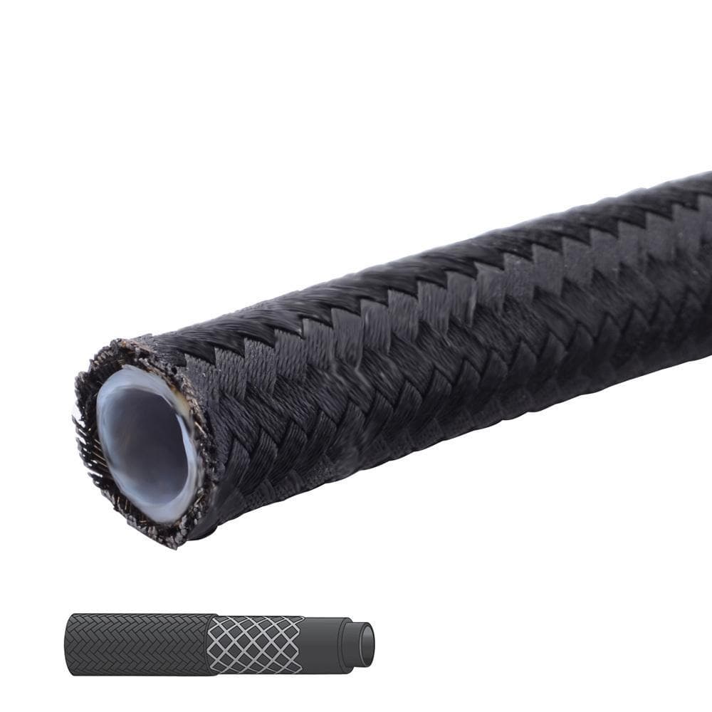 Black braided PTFE fuel line can be used as fuel injection hose, turbo oil feed and boost line, transmission oil cooler line, EFI fuel line, carb fuel line, ls engine swap fuel line, fuel return line, vapor return line, vacuum line, fuel supply line and other high temperature high pressure applications.