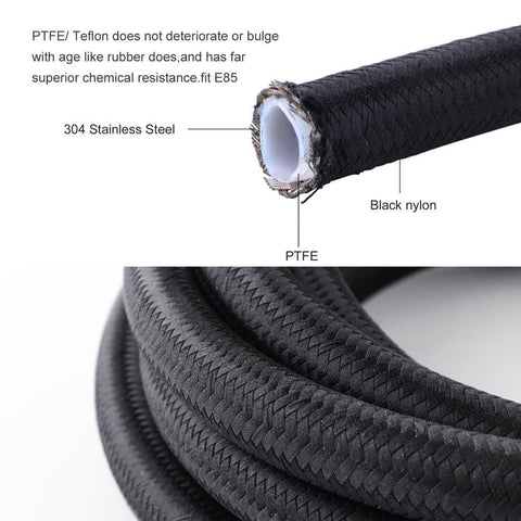 PTFE Fuel Line: Best for Oil gas line, Fuel hose, Clutch hose. Recommended for E85, Alcohol, Nitro, transmission, clutch, nitrous, power steering, oiling, hydraulics & vacuum applications.