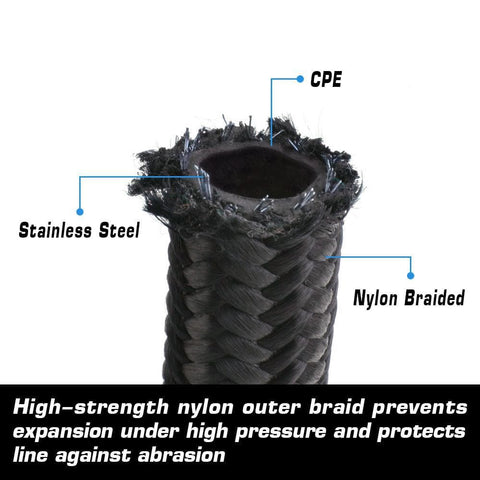 High-strength nylon outer braid prevents expansion under high pressure and protects line against abrasion