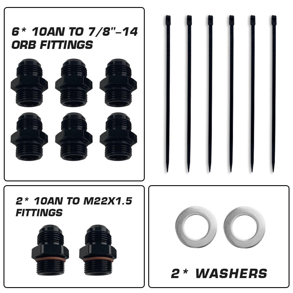 High-flow -10AN lines and fittings ensure high flow while preventing leaks