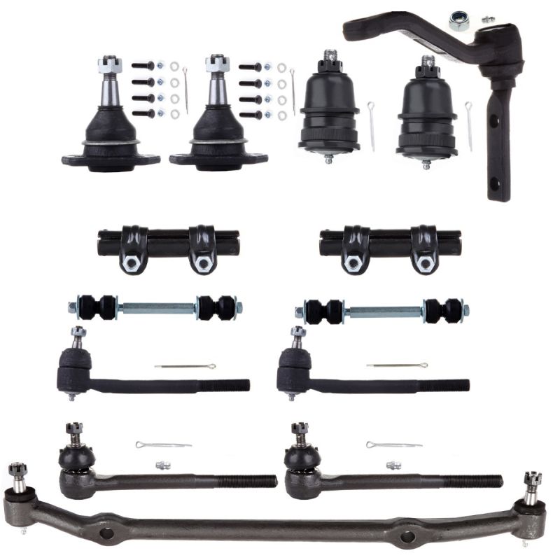 1.Specifications:(1)DS909 Center Link,(2)ES2034RLT Front Inner Tie Rod End,(2)K6145T Front Lower Ball Joint,(2)ES2033RLT Front Outer Tie Rod End,(2)K5254 Front Sway Bar End Link,(2)K5208 Front Upper Ball Joint,(1)K6187T Idler Arm,(2)ES2032S Tie Rod Adjusting Sleeve - 5/8 Inch X 18 Threads