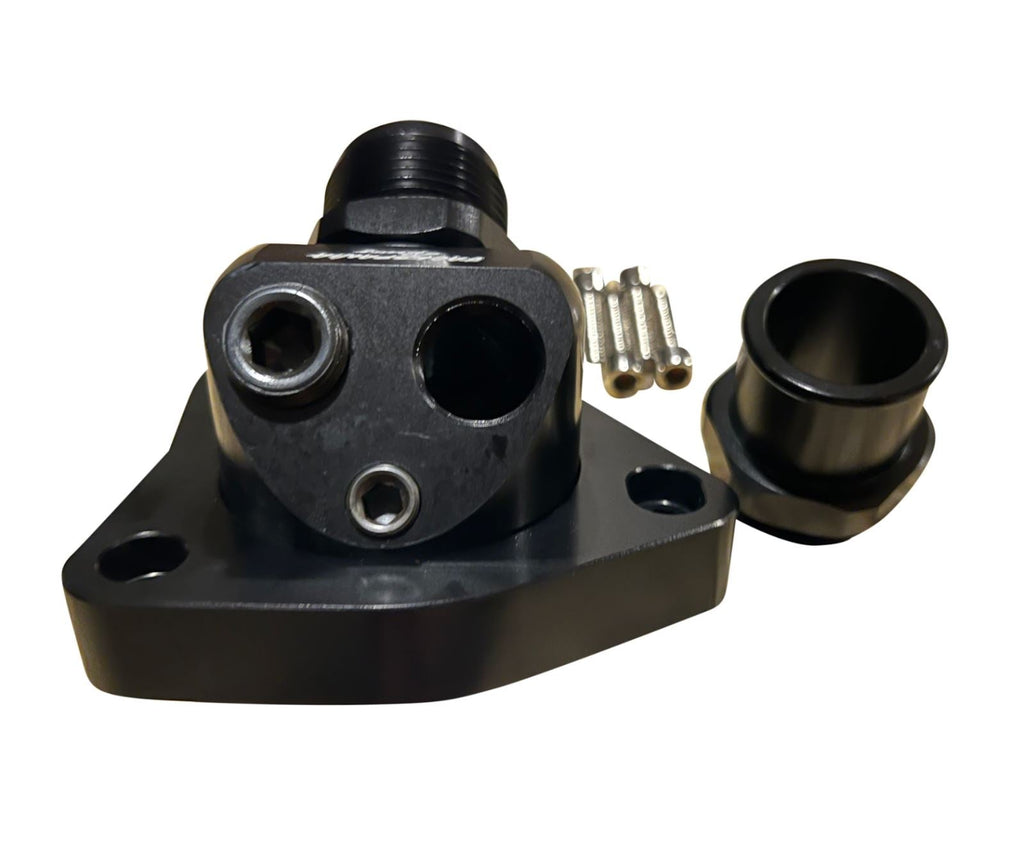 - This allows you to use whatever size fitting you need for custom installations. If you want to use braided hose with AN fittings, this housing will bolt on easily and with the right adapter threaded in, you’ll be all set.