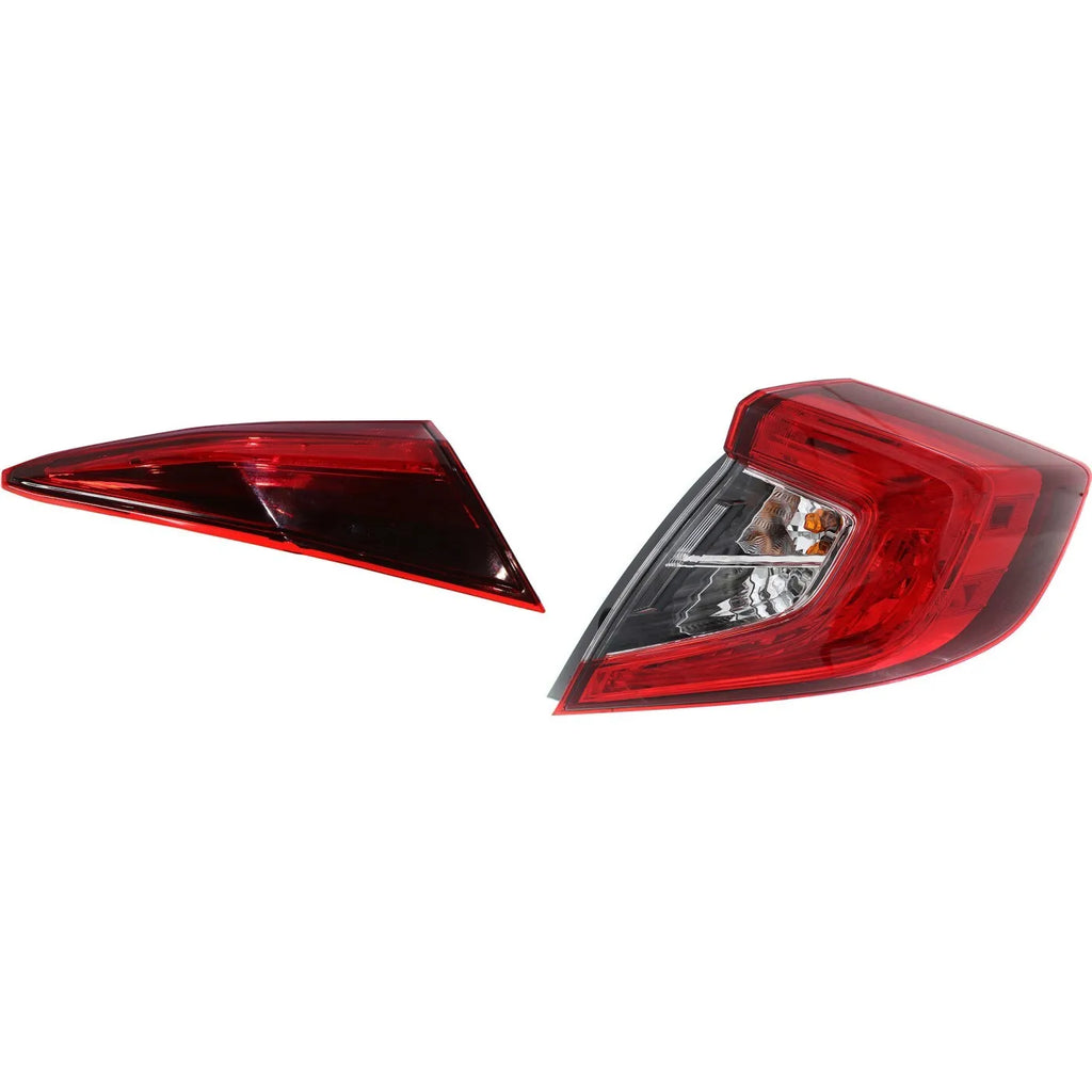 Tail Light Set For 2016-2021 Honda Civic RH Inner Outer Clear/Red Halogen CAPA