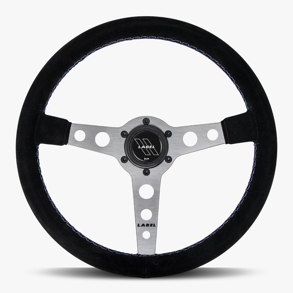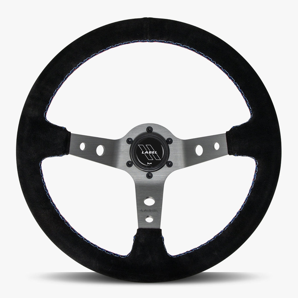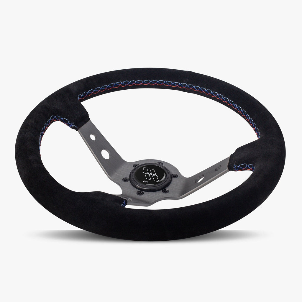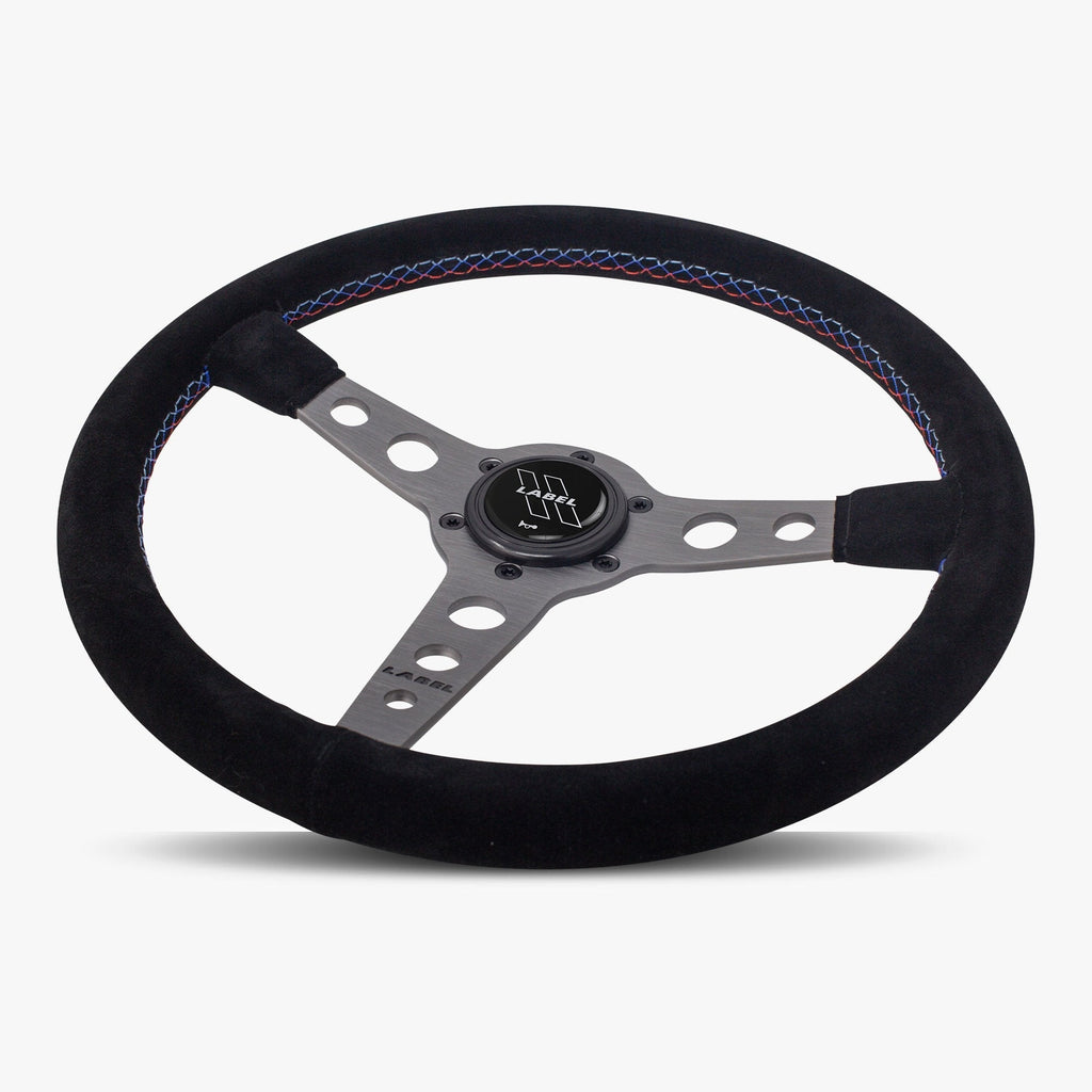 The Daytona | Black Alcantara Suede | Graphite Spoke | Bavarian Stitch