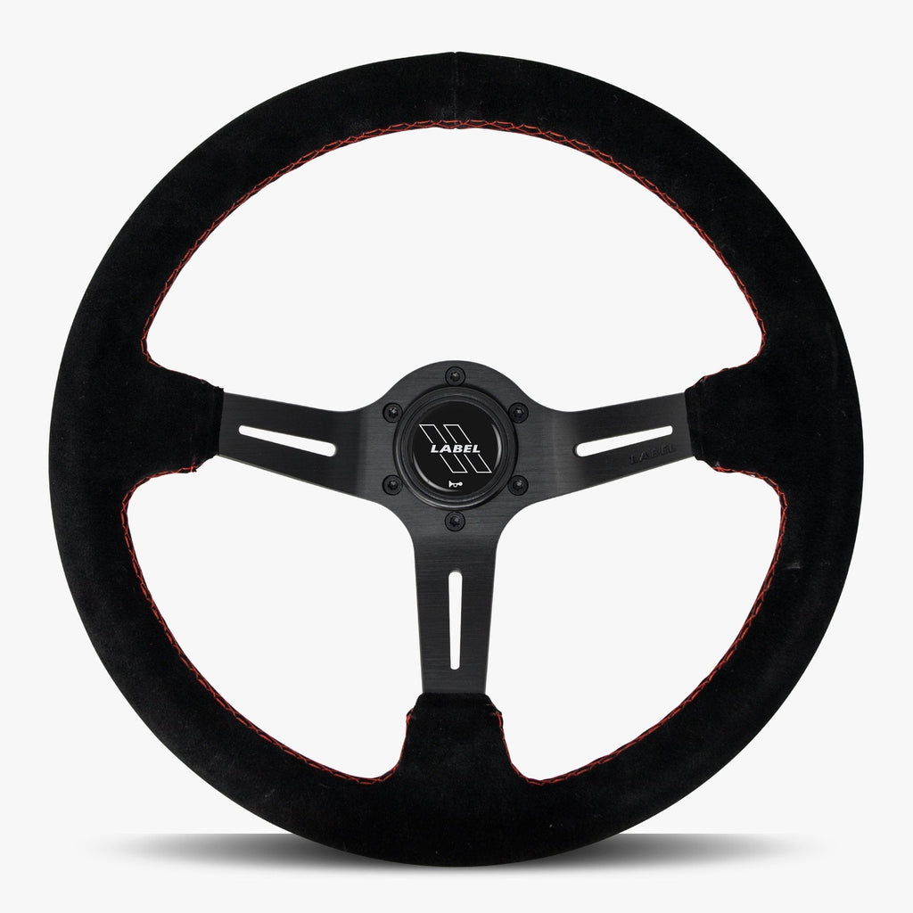 The Le Mans | Black Alcantara Suede | Black Spoke | Red Stitch