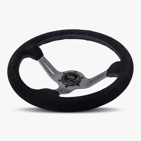 The Le Mans | Black Alcantara Suede | Graphite Spoke | Bavarian Stitch