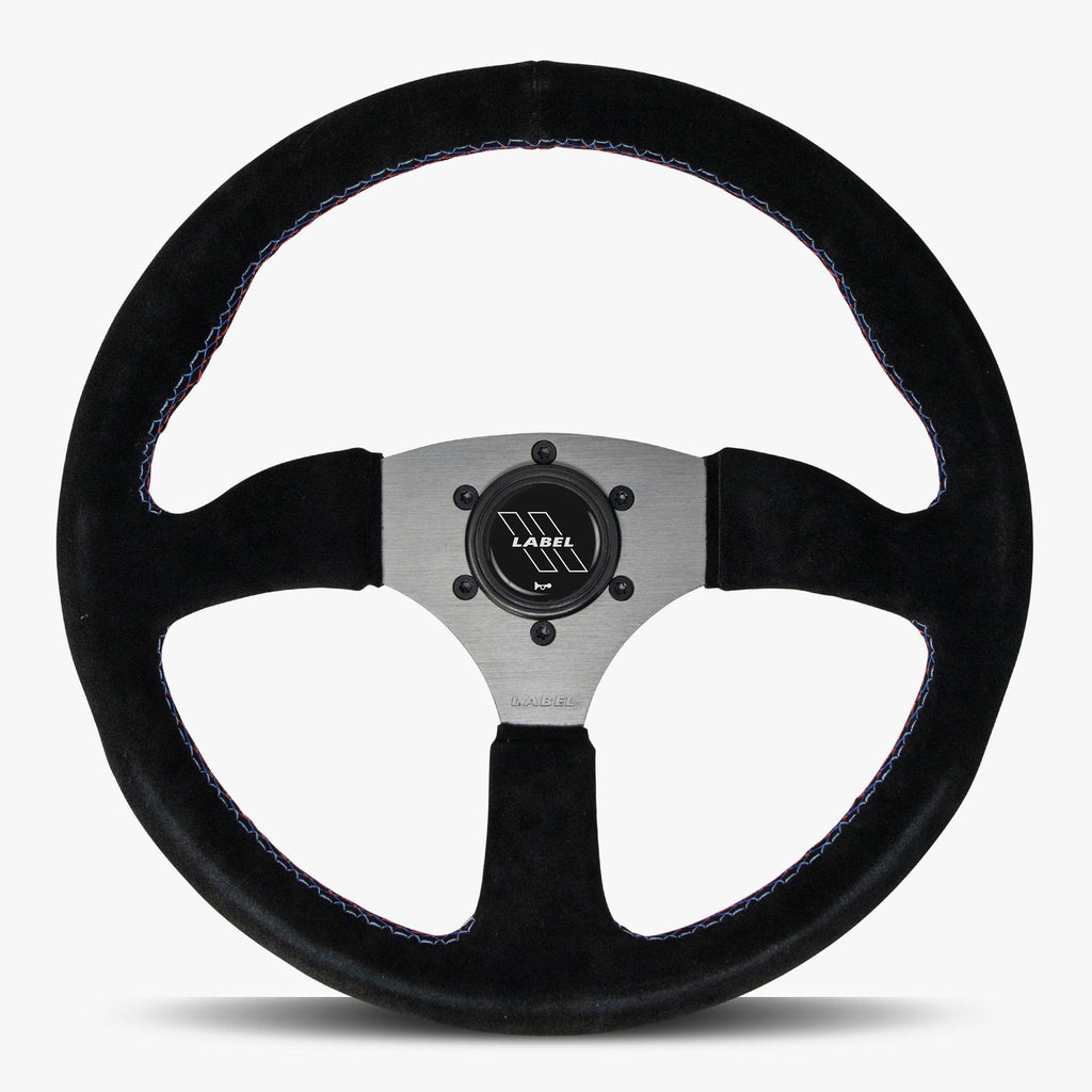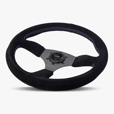 The Performa | Black Alcantara Suede | Graphite Spoke | Bavarian Stitch