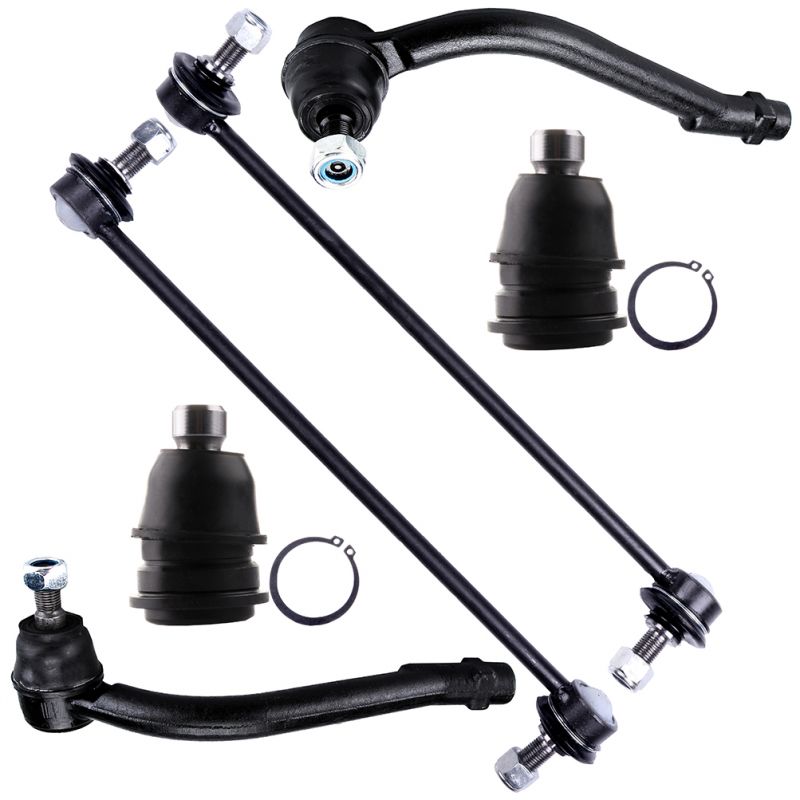 1.Specifications:(2)K90375 Front Lower Ball Joint, (1)ES800035 Front Outer Tie Rod End - Driver Side, (1)ES800055 Front Outer Tie Rod End - Passenger Side, (1)K750204 Front Sway Bar End Link - Driver Side, (1)K750205 Front Sway Bar End Link - Passenger Side