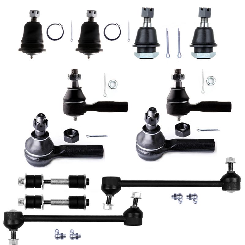 1.Specifications:(2)ES3660 Front Inner Tie Rod End,(2)K80591 Front Lower Ball Joint,(2)ES3466 Front Outer Tie Rod End,(2)K90389 Front Sway Bar End Link,(2)K90663 Front Upper Ball Joint,(2)K90664 Rear Sway Bar End Link
