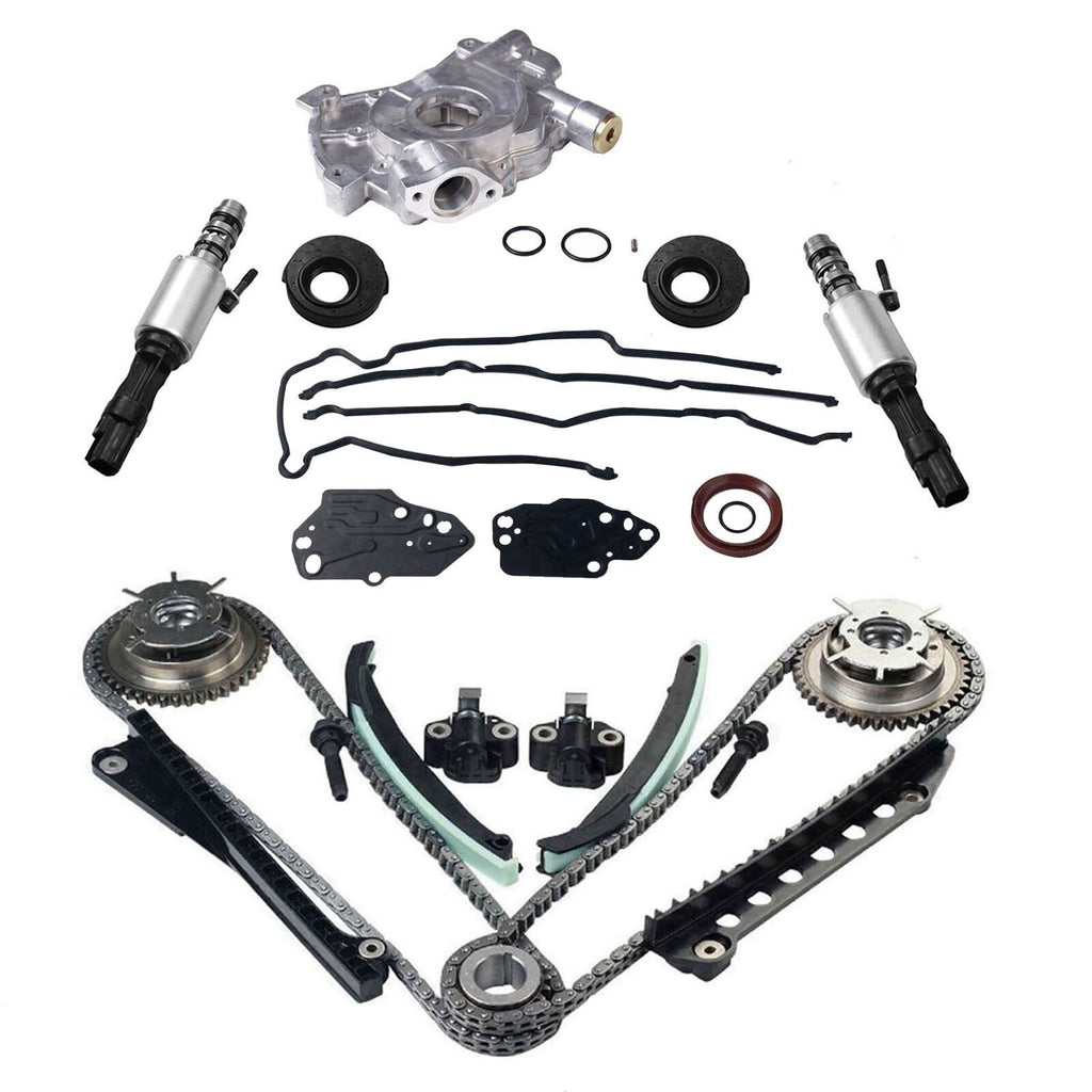 Timing Chain Oil Pump Kit+Cam Phasers+Gasket+Solenoid For 04-08 Ford Lincoln 5.4