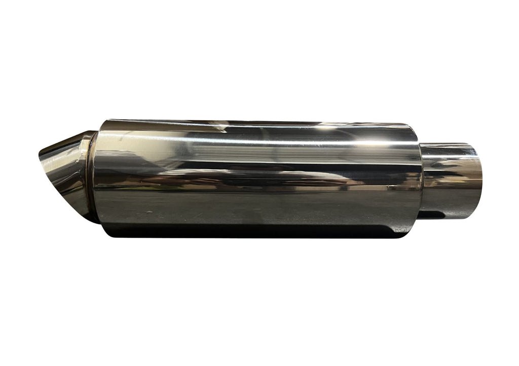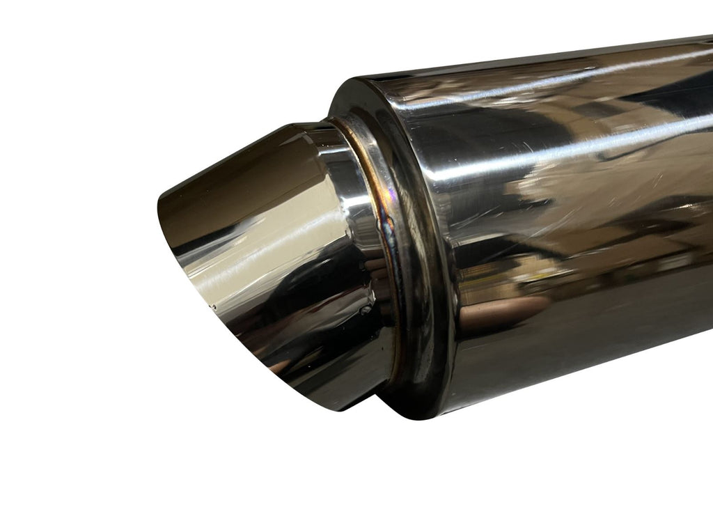 The compact round body design is perfect for installation in tight spaces and also offers a 5+lbs weight reduction over larger oval style or oem mufflers.