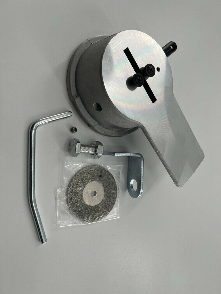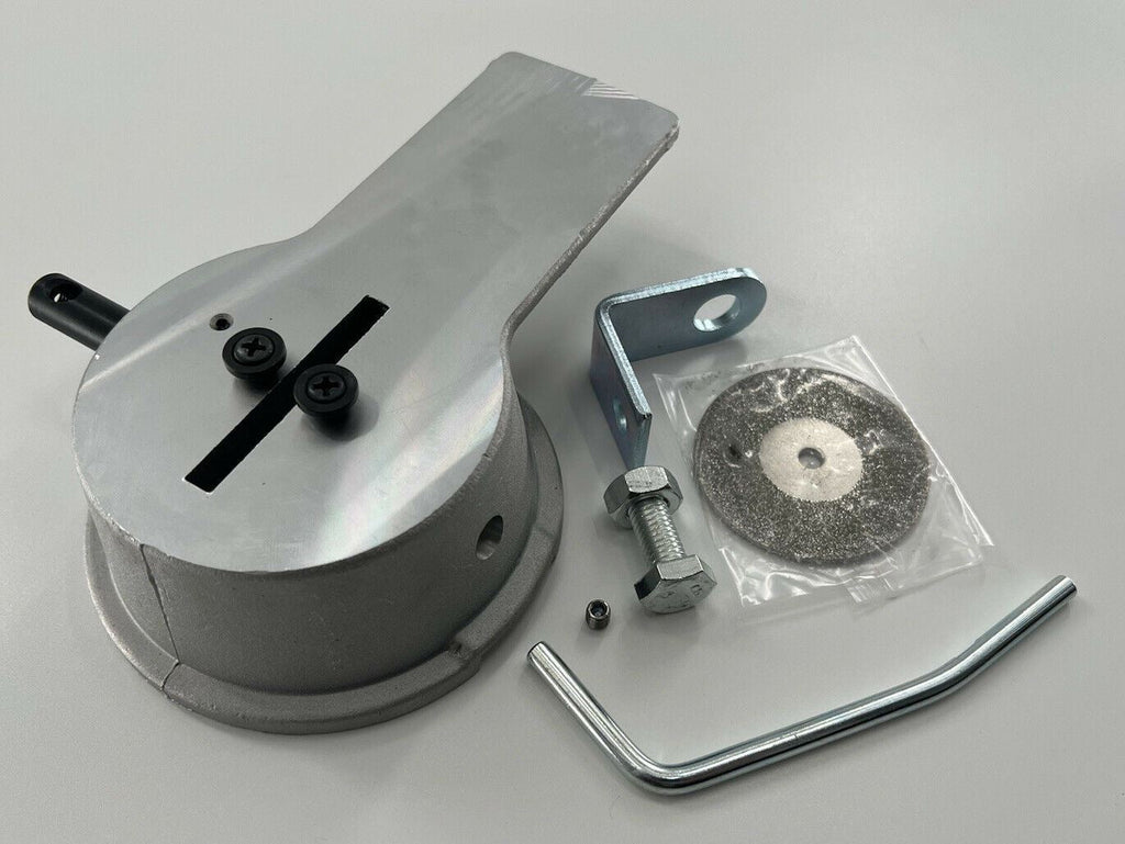 This listing is for a ring gap filer tool. It features a carbide grinding wheel and cuts chrome-plated stainless steel quickly and accurately. Easily mounts to a workbench.