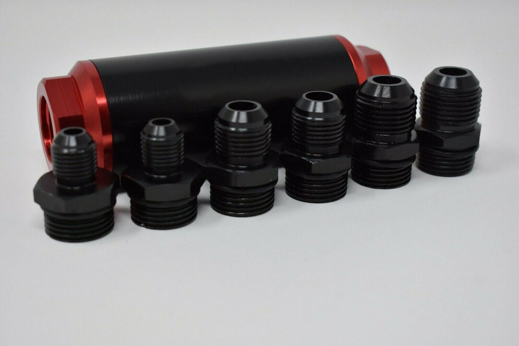 Universal Racing In-Line Fuel Filter With AN 6 8 10 Fittings Adapter 40 Micron