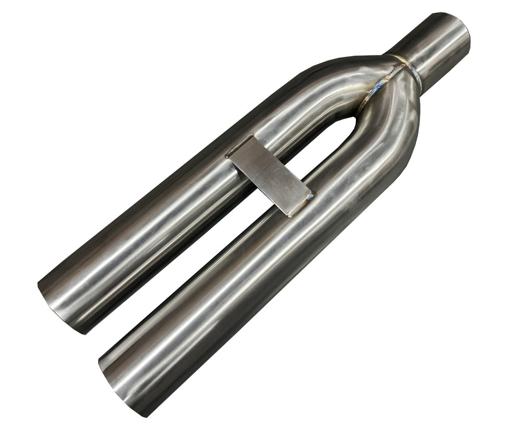 Universal 3 inch "Blast" style tips will add the necessary flare in dressing-up the aesthetics of the vehicle. With a single 3" inch inlet splitting to a twin 3" inch exit, the tips may be welded on or added to existing ones.